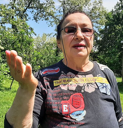 Soțul, Gheorghe, a fost baza gospodăriei, aducând bani în casă. A lucrat în câmpul muncii până când s-a desființat fabrica. „Bărbatul e bolnav săracul. A lucrat la Metalurgie, la URA. E ieșit la pensie, are 16 milioane. De acolo îmi dă 5 milioane mie, pentru tratament. Am diabet, cardeopatie ischemică la inimă… am scos și fierea. Reumatism! Dar astea nu se văd. Da’ tot n-ajung. De asta vin la oraș cu rata și dacă e să plouă. Trebuie bani de mâncare ca să avem cu ce să trăim.