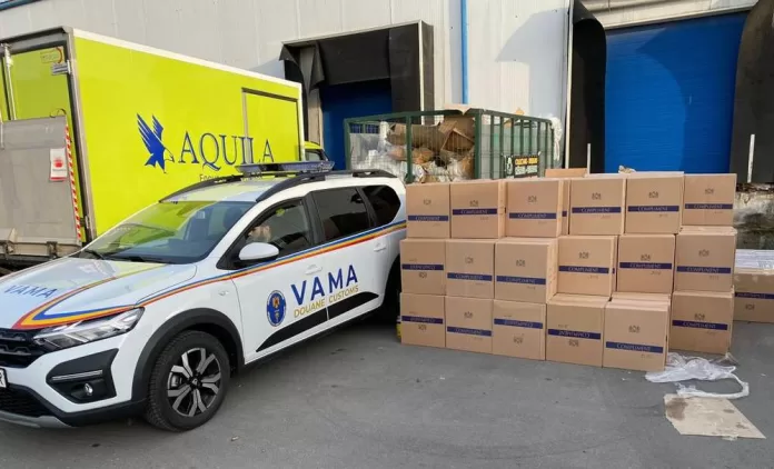 Prejudiciul estimat este de 2.301.343,96 lei pentru accizele aferente cantității de țigarete descoperite.