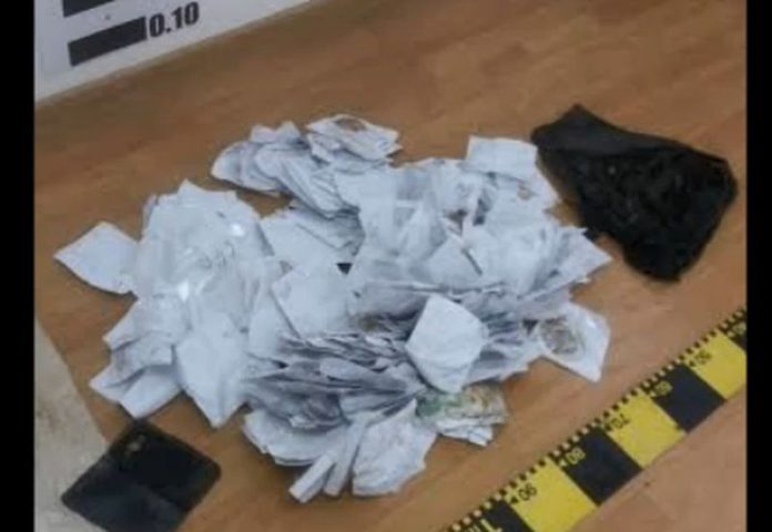 În urma cercetărilor efectuate, poliţiştii au găsit, pe raza comunei Bîrsăneşti, îngropat în pământ, un sac conţinând peste 250 de plicuri din hârtie, mai multe bijuterii din metal galben şi alb, şi 340 lei.