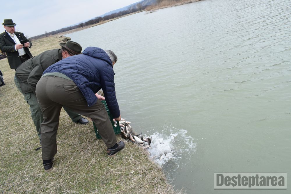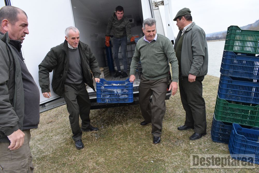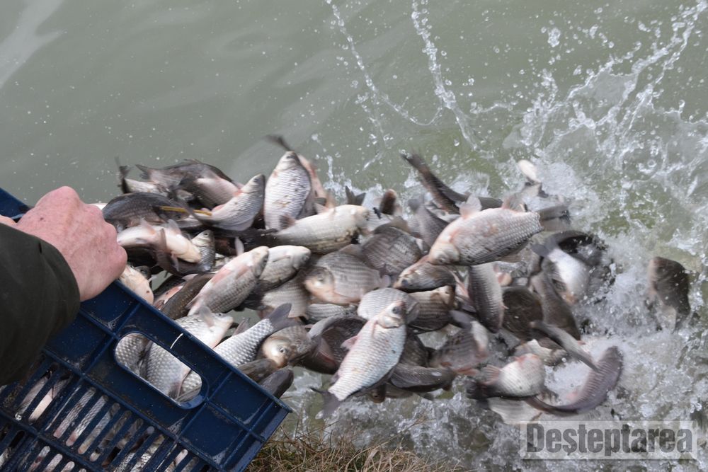 Aduse în condiții excelente, tocmai de la Botoșani, de la cea mai mare fermă piscicolă din Moldova ( „Lebăda”), cele 900 kg de puiet de caras și-au găsit un nou cămin.