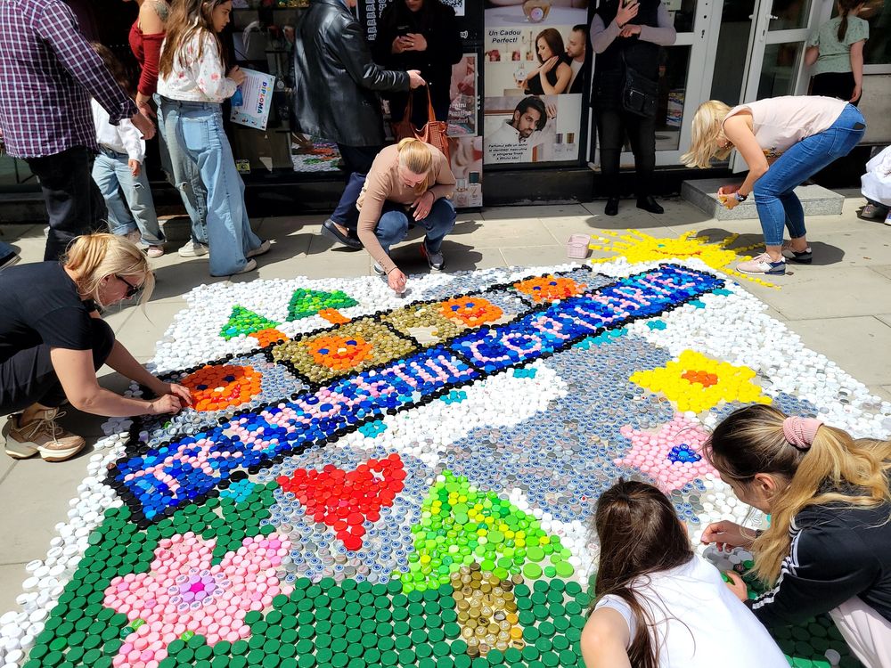 Felicităm toți participanții la activitățile de azi, mai ales pe cei de la concursul de creativitate, care s-au străduit cu succes sa colecteze cantități impresionante de capace și apoi să le dea această întrebuințare artistică. Trecători cu copii și fără copii se opreau, admirau și fotografiau minunățiile realizate de concurenți.
