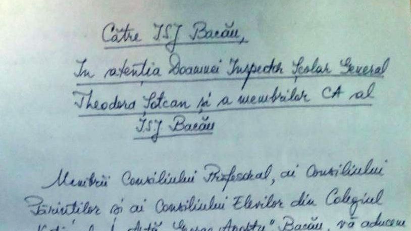 Dupa schimbarile operate de Inspectoratul Scolar Judetean la conducerile mai multor licee din Bacau, parintii si elevii au inceput sa initieze petitii prin care solicita revenirea asupra deciziei si pastrarea directorilor.