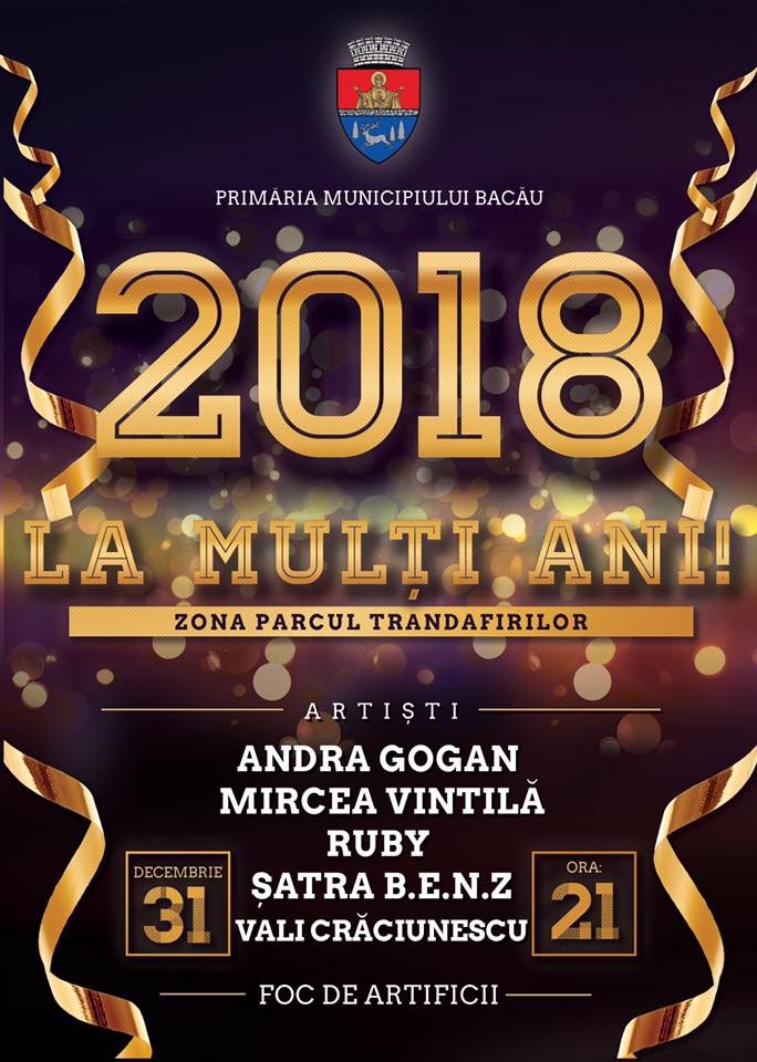 Ca în fiecare an, Revelionul va fi sărbătorit în Bacău cu un concert și cu un foc de artificii care vor da semnalul trecerii în 2018.