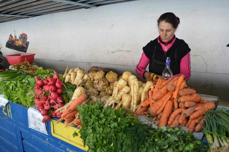 Elena Buftea, de la Itesti, e una dintre putinii tarani care trudesc la serele proprii. Taraba e plina. Nu se goleste deloc repede. „N-are lumea bani. Nu vedeti ca se usuca zarzavatul pe taraba! Nu cumpara oamenii, ca n-au parale. Uitati, salata fac cam 5.000 de bucati pe an. Ceapa, fara numar. Am dedesubt ceapa necuratata, ca nu o pot vinde pe asta, de pe taraba. Cu 50 de bani bucata, e pomana. Le dau degeaba, domnu’”, se plânge femeia. Mai incolo, aproape de iesirea laterala din Piata Mare, o tânara se agita cu folos pe lânga taraba plina cu de toate. Lumea buluc, atrasa probabil si de vederea reporterului cu camera foto la vedere. E Mihaela, de 37 de ani, din Prajesti. E nemultumita, si de vânzare, si de autoritati, de toti.