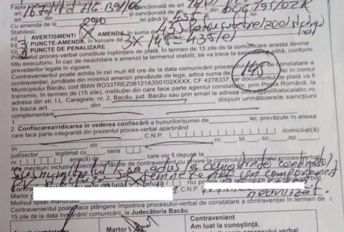 Pe portalul Judecătoriei Bacău acest proces verbal a fost deja contestat. Înregistrarea s-a făcut în data de din 10 mai, dar nu s-a stabilit încă un termen.