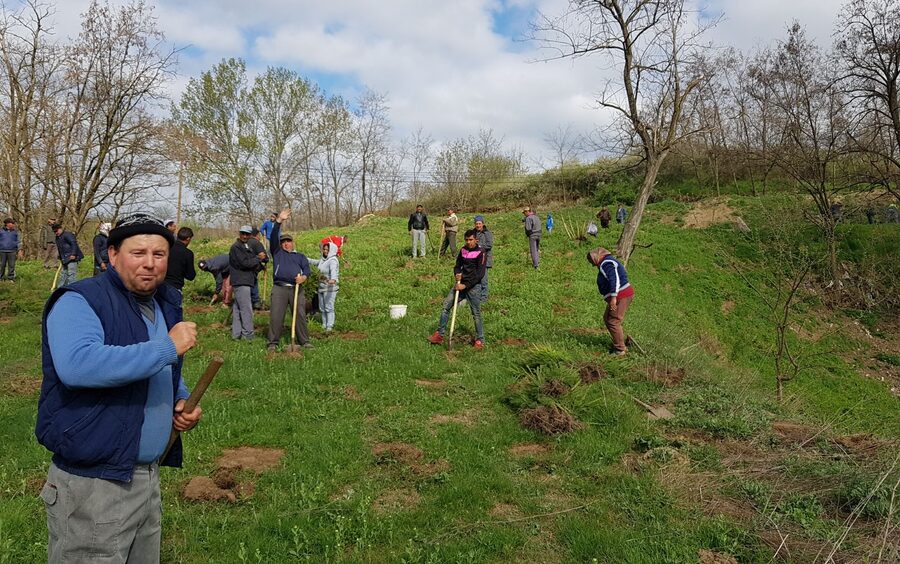 Astfel, vineri, 20 aprilie, dis de dimineață, zeci de elevi de la școlile din comună, împreună cu beneficiari ai ajutorului social și angajați ai primăriei, s-au înarmat cu lopeți și hârlețe și s-au deplasat pe terenul pregătit pentru plantarea pomilor.