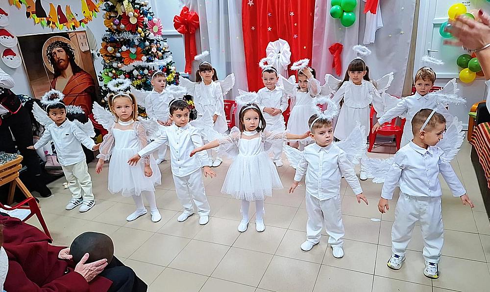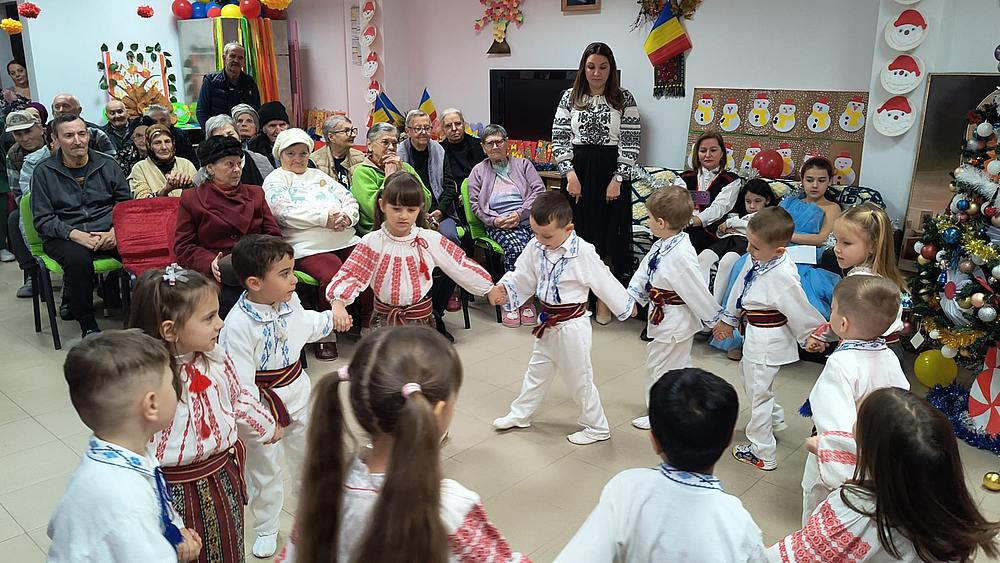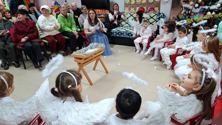 La sfârșitul săptămânii trecute, la Căminul de Bătrâni “Brațele Părintești “ , preșcolarii de la grupa mijlocie B de la Școala Gimnazială Octavian Voicu, Grădinița Dumbravă Minunată îndrumați de doamnele prof. pt. educație timpurie: Tulbure Mirela Loredana și Zetu Alexandra Lia împreună cu ajutoarele lui Moș Crăciun, prof. pt. educație timpurie: Suciu Loredana, Tabarcea Loredana Irina și profesor de dans Toma Denisa prin proiectul social – caritabil „Din inimă pentru o inimă”, au descrețit frunțile și bucurat inimile bătrânilor de la centru prin momente artistice specifice sărbătorilor de iarnă: recitare de poezii, colinde, plugușor, sorcova și mai ales datinile străbune care au fost reînviate: căprița, călușarii, dansul măștilor, moment de percuție.