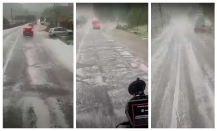 Azi, în jurul orei 15:00, comuna Oituz din județul Bacău a fost lovită de o ploaie torențială însoțită de grindină. Precipitațiile au căzut într-un interval scurt de timp, iar gheața a acoperit temporar drumurile și grădinile din zonă, creând o imagine neobișnuită pe DN11, între Onești și Târgu Secuiesc, informează unupetrotus.ro.