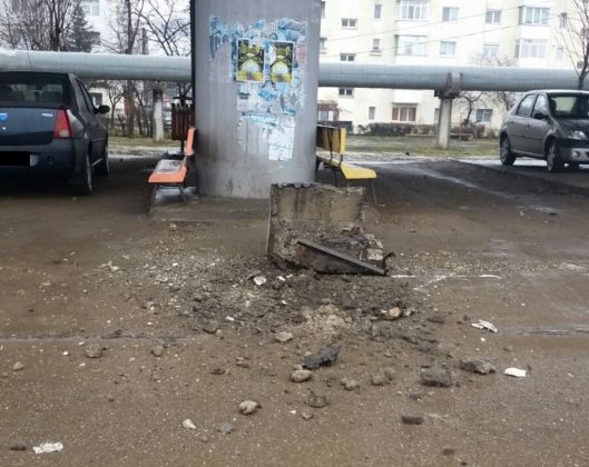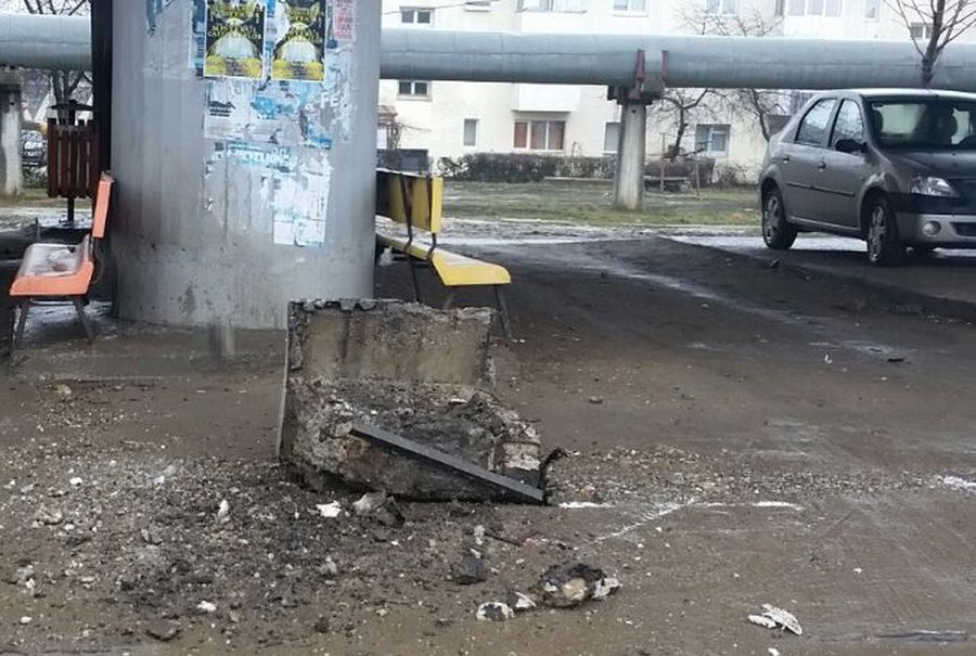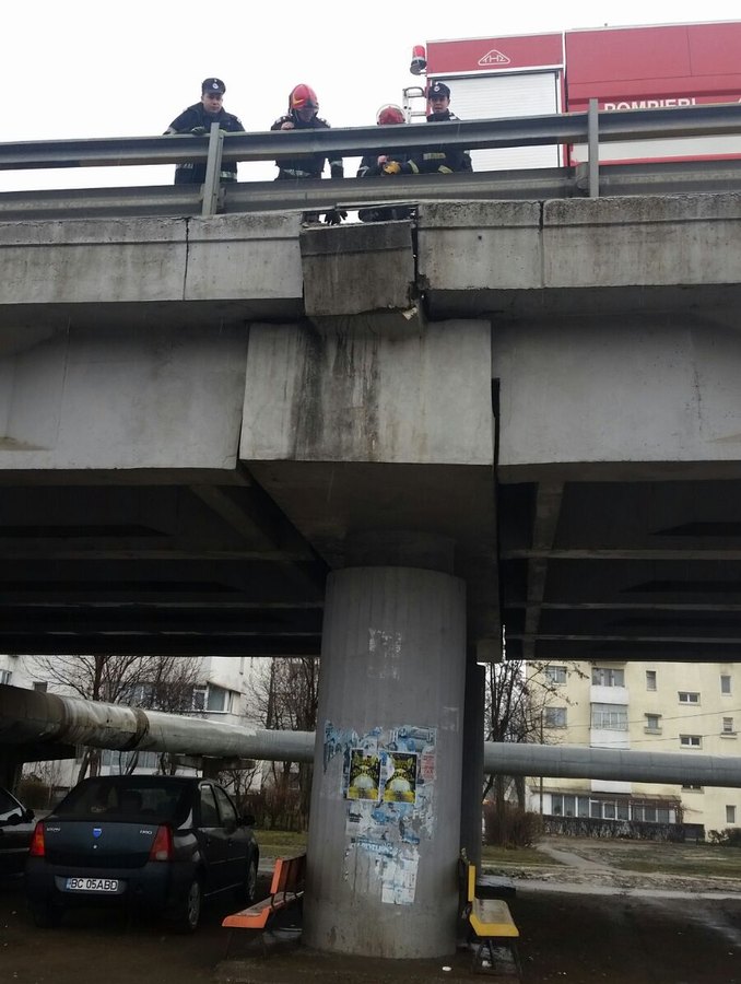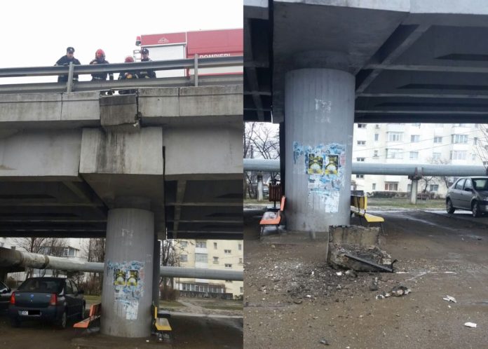 O bucata de beton din Podul de la Narcisa a fost degajată, astăzi, de pompieri, pentru că amenința să se prăbușească, punând în pericol viață trecătorilor.
