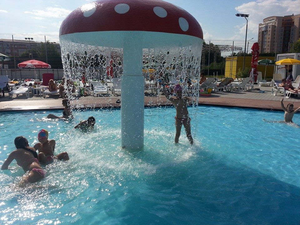 Aici am gasit doua piscine exterioare (de 11,5 / 5 metri respectiv 16/ 9 metri si adâncimi de 1,5 respectiv 1,6 metri),dar si un bazin acoperit, semideschis, cu dimensiuni de 20/10 metri si o adâncime de1,70 metri. Apa este incalzita si clorinata cu clor natural din sare. In zona piscinelor sunt amplasate sezlonguri (aproximativ 300 locuri) pe gazon sintetic, doua terase, locuri de joaca pentru copii, teren de volei pe nisip, iar sauna este inclusa in pret. Programul este de luni pâna duminica de la 9.00 la 21.00, iar dupa aceasta ora se pot organiza petreceri private la piscina.