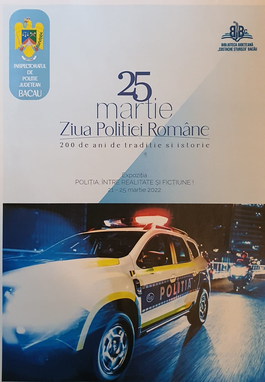 Astfel, în săptămâna 21-25 martie a.c., în cadrul Bibliotecii Județene ”Costache Sturdza” Bacău și a Bibliotecii Municipale „Radu Rosetti” Onești se organizează expoziție de carte, sub titulatura ”POLIȚIA ÎNTRE FICȚIUNE ȘI REALITATE”.