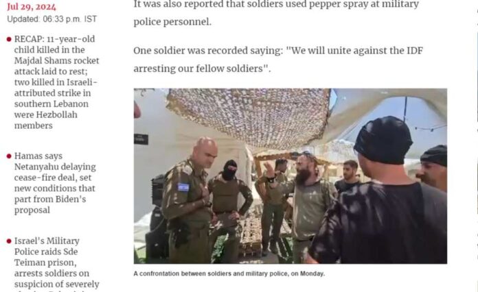Ofițerii Poliției Militare au efectuat luni o percheziție la închisoarea Sde Teiman și au reținut mai mulți soldați suspectați de abuz asupra unui deținut palestinian. Conform unei surse de securitate, deținutul a fost transportat la spital cu răni grave într-o zonă intimă – răni care l-au lăsat incapabil de a merge.