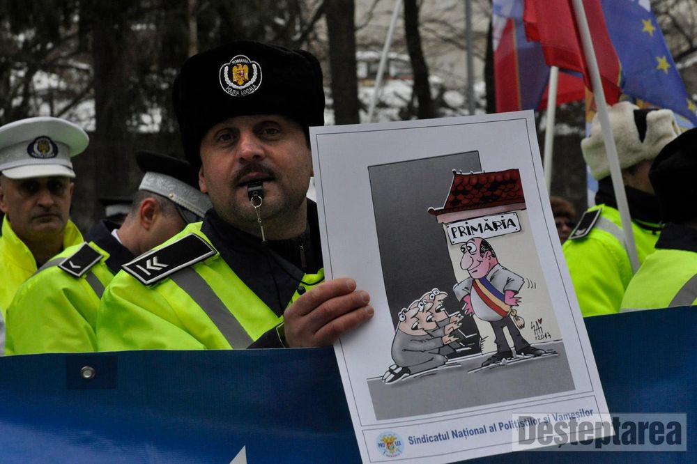 Protestatarii au venit echipați cu tot materialul specific unor asemenea manifestări, cu tobe, țignale și vuvuzele, și au afișat pancarte pe care scria „Am ieșit din casă pentru că ne pasă”, „Nu sunt slugă”, „Iertați-ne că am tăcut până acum!”, „După prohodul poliției locale cine va urma?” și altele. Spre finalul acțiunii, o delegație a protestatarilor a intrat la discuții cu membri ai CL și cu primarul Gheorghe Baciu.