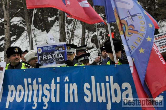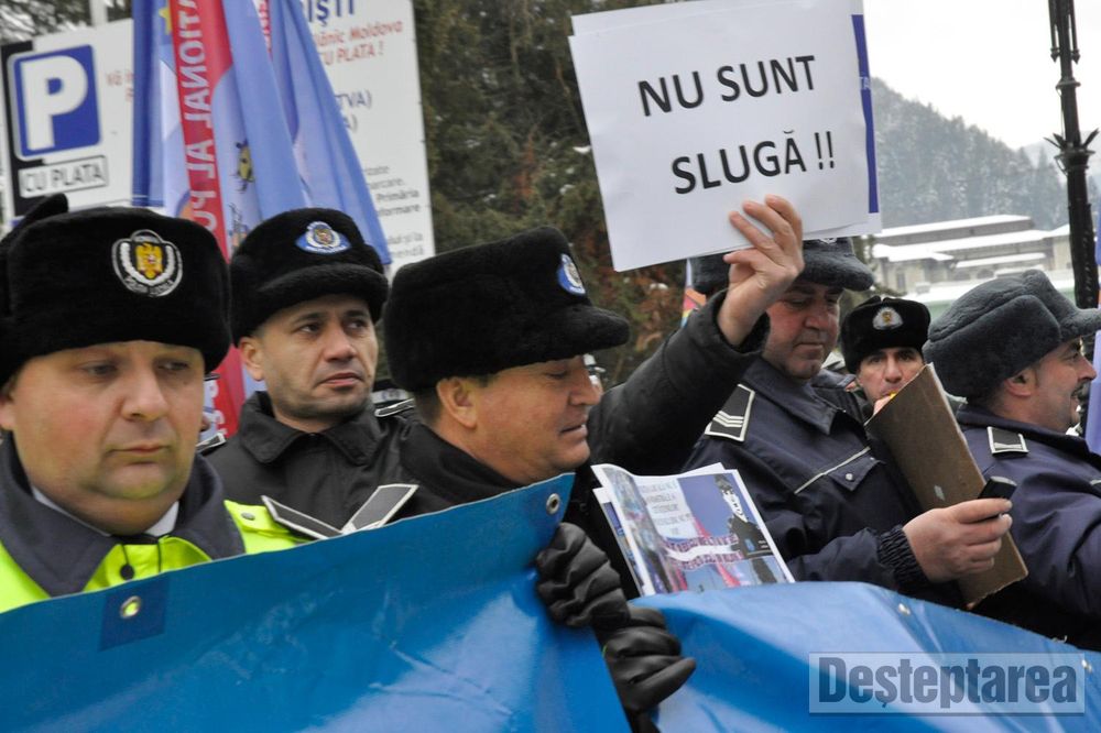 Circa 120 de persoane, între care majoritatea polițiști locali din mai multe județe ale României îmbrăcați în uniformele lor specifice, au manifestat sâmbătă, 17 februarie, în fața primăriei din Slănic Moldova, acțiunea de protest fiind organizată de Sindicatului Național al Polițiștilor și Vameșilor „Pro Lex”. Manifestanții au dorit să fie alături de colegii lor din orașul stațiune, pentru care Consiliul Local (CL) tocmai a luat măsura de a li se desființa posturile.