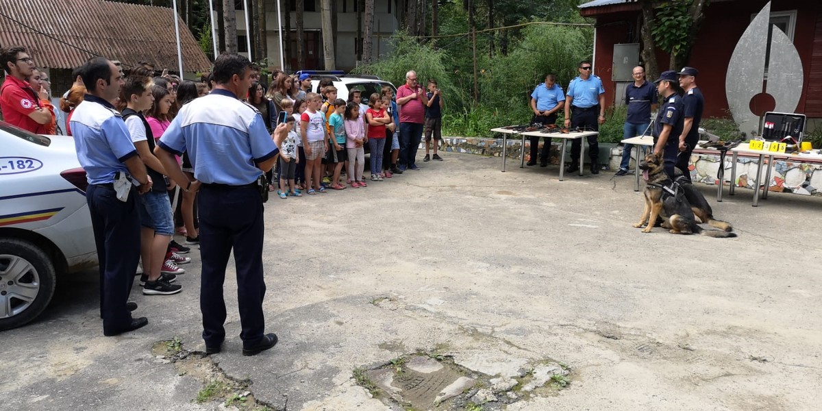 Poliţiştii din cadrul Compartimentului de Analiză şi Prevenire a Criminalităţii, Serviciului Rutier şi Serviciului Criminalistic au fost prezenţi astăzi în mijlocul copiilor aflaţi în vacanţă, în tabăra de vară de la Valea Budului.