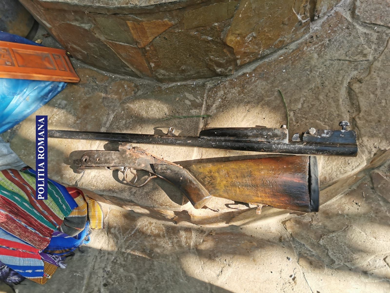Cu această ocazie, a fost depistat bărbatul de 34 ani, şi totodată au fost identificate şi ridicate în vederea continuării cercetărilor, mai multe bunuri, respectiv o armă letală de vânătoare, confecţionată artizanal, calibrul 12, 7 cartuşe cu alice, calibrul 12, confecţionate industrial, o ţeavă ce provine de la o armă de război, având ataşată cutia mecanismelor şi trăgaciul, 5 cartuşe calibrul 5,6 şi 6 tuburi de acelaşi calibru şi aproximativ 100 g pulbere.