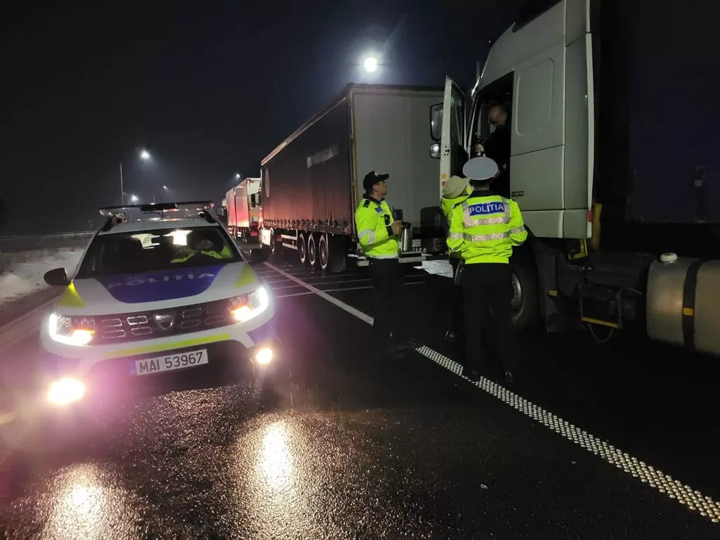 Recomandările polițiștilor, pentru ca drumul până la destinaţie să fie cât mai sigur, au fost însoțite, pe lângă sfaturile transmise, de sandwich-uri, cafea şi ceai cald.