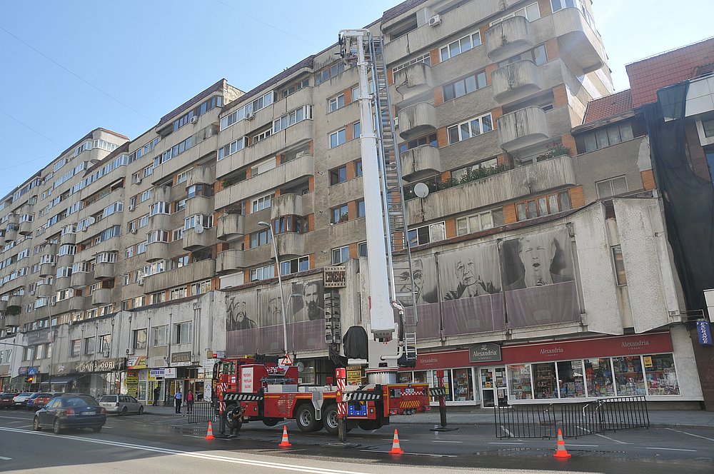 Autospeciala cu scară a Inspectoratului pentru Situații de Urgență Bacău a revenit pe strada Nicolae Bălcescu din municipiul Bacău, la blocul nr. 12. În urmă cu aproximativ două săptămâni, autoscara a fost chemată la imobilul de la aceeași adresă pentru a înlătura tencuiala deteriorată ce stătea să cadă peste trecători și mașinile parcate în zonă.