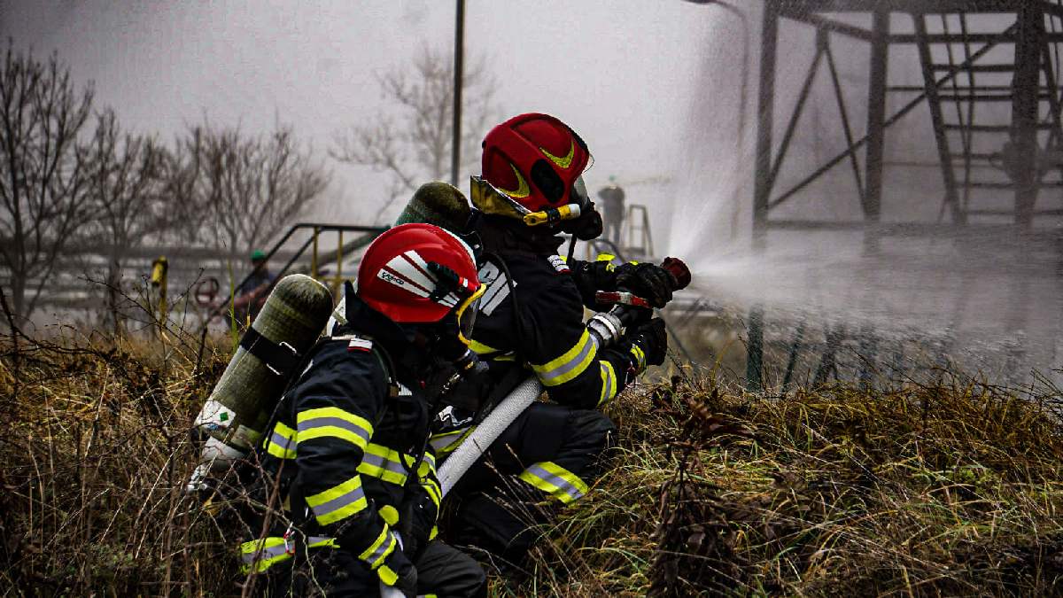 Până la sosirea echipajelor de pompieri, prima intervenție a fost asigurată de Serviciul Privat pentru Situații de Urgență al operatorului economic.
