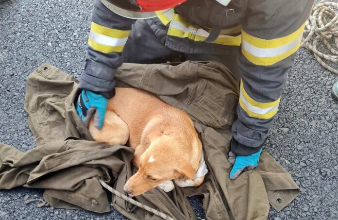 Intervenția a fost realizată cu ajutorul accesoriilor din dotare, în special a cordiței de salvare. Pompierii au acționat cu profesionalism și precizie, asigurându-se că animalul nu suferă răni suplimentare în timpul extragerii. După câteva minute tensionate, câinele a fost scos în siguranță din râpă.