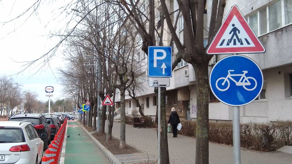 Un exemplu revelator este reprezentat de indicatorul „Parcare,” conceput pentru automobiliști, dar aflat paradoxal pe marginea pistei de biciclete.