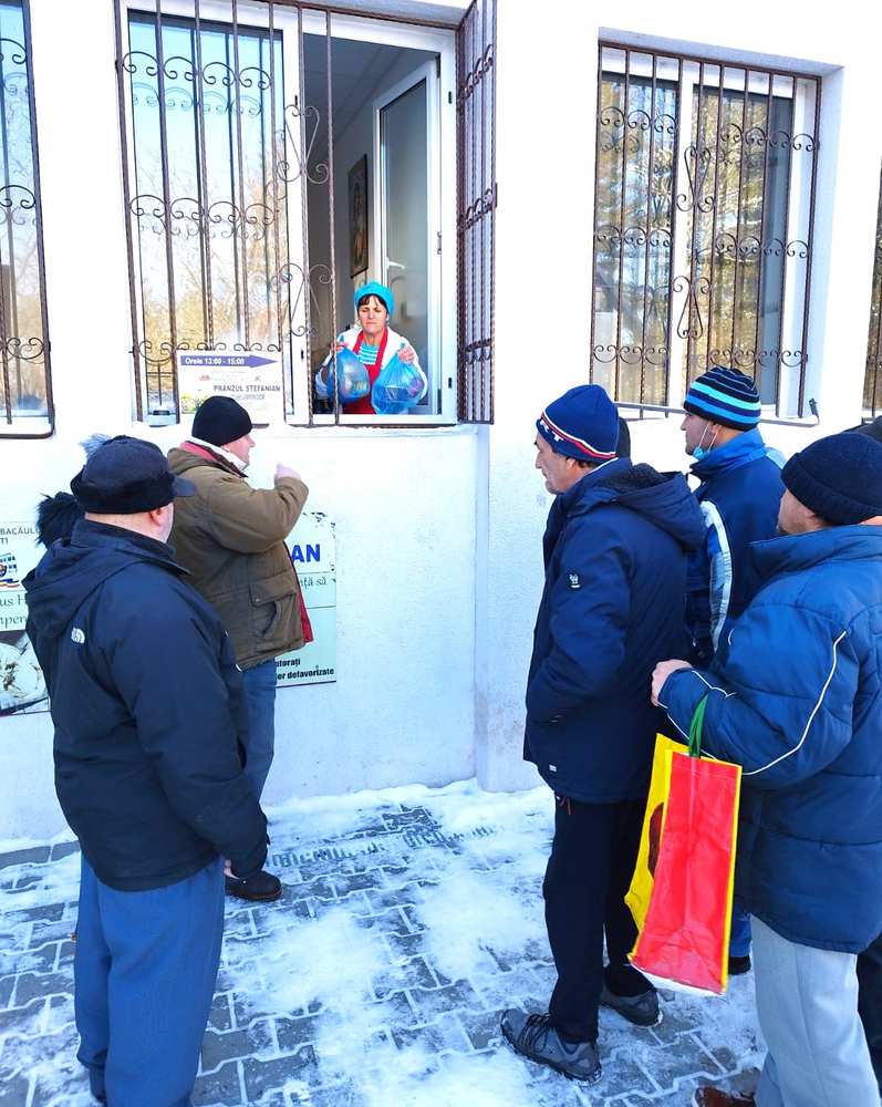 Un copil care a trecut zilele acestea pe la „Masa Bucuriei” a Programului „Prânzul Ștefanian” aplicat de Protopopiatul Onești chiar la sediul său pentru a oferi, zilnic, gratuit, hrană caldă tuturor celor care au nevoie de ea – aflăm de la Asociația „Patmos” a Protopopiatului – s-a întâlnit, în curtea instituției religioase cu părintele protoiereu Ioan Bârgăoanu. Copilul mușca pofticios dintr-un măr.
