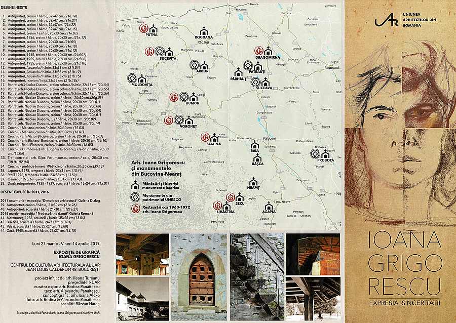 Arh. Ioana Sabina Grigorescu (1915-2006) a lucrat, de la mijlocul secolului trecut, la Comitetul de Stat pentru Arhitectură și Construcții și apoi la Direcția Monumentelor Istorice. S-a afirmat prin importante proiecte de restaurare sau/și reconstruire de monumente istorice pentru Mănăstirea Dealu-Târgoviște (1954-1955) și pentru multe mănăstiri din Nordul Moldovei, dar și pentru Casa Dosoftei din Iași. Rigoarea restauratorului s-a împletit cu atentă măsură și cu fantezia, motiv pentru care unele dintre lucrări au fost aprig discutate în mediul profesional, dar au înfruntat cu succes timpul, opera sa fiind astăzi unanim apreciată.