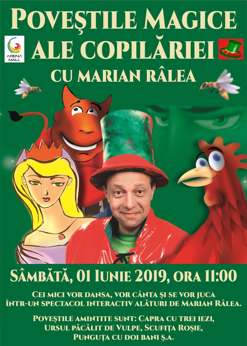 Sâmbătă, 01 iunie 2019, ora 11:00 în Arena Mall se va desfăşura un eveniment dedicat Zilei Copilului ce poartă numele “Poveştile magice ale copilăriei cu Marian Râlea”.