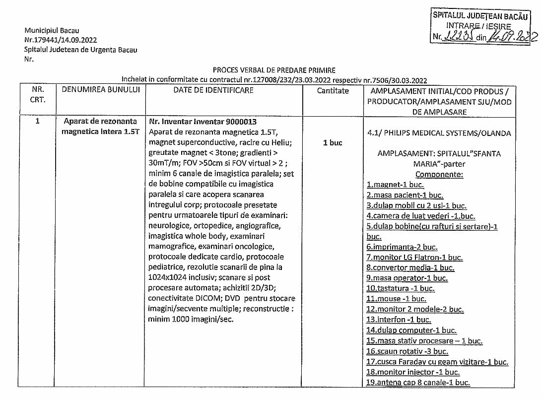 „Abia luna trecută, la solicitarea expresă a Spitalului Județean de Urgență, care a propus punerea în funcțiune a RMN-ului, Primăria Bacău – care este proprietarul aparatului – s-a trezit din trândăvie și a predat echipamentul medical către SJU”, a mai anunțat acesta.