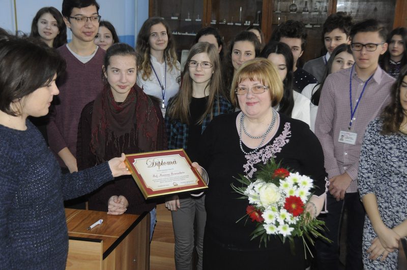 Anul acesta, la editia a XX-a a Premiilor Desteptarea 2015, prof. Mariana Rosenschein este laureata tocmai pentru ca prin rezultatele exceptionale obtinute cu elevii sai a reusit performanta de a aduce pentru prima oara in Bacau Olimpiada Nationala de Chimie, aflata la editie jubiliara – 50 de ani de la organizare, olimpiada care se va desfasura in luna aprilie, a anului viitor, in Saptamâna Altfel. „Este o mare onoare pentru mine. Imi exprim toata gratitudinea pentru tot ceea ce faceti. Este un premiu special pentru mine, mai ales ca vine intr-un moment important din lumea noastra, cea a profesorilor chimisti din Bacau. Promitem de pe acum ca vom avea, din nou, cele mai bune rezultate si la aceasta olimpiada. Va multumesc!” Premiul nostru a fost primit cu emotie si lacrimi ascunse in ochi de profesorul Mariana Rosenschein, in aplauzele elevilor sai. Toti olimpici.