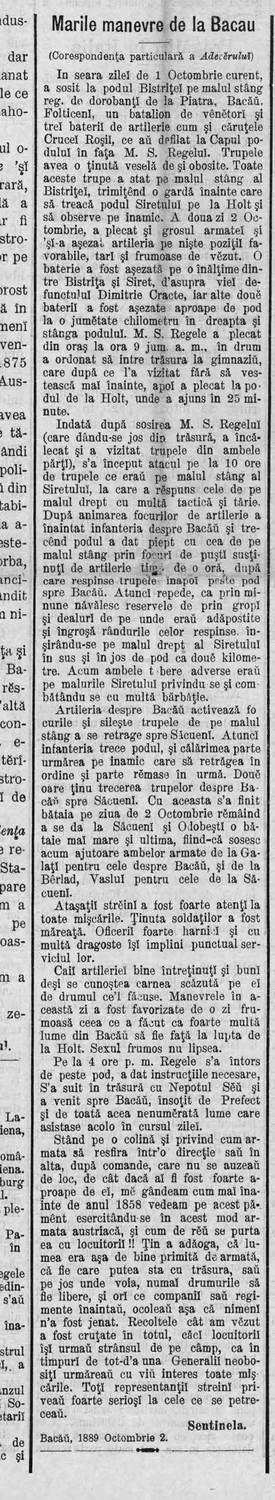 HomeMemoriaPresa de altădată Presa de altădată Deșteptarea 25 aprilie 2023 Acțiune FacebookTwitterWhatsAppTelegramVK Adevărul, din 4 octombrie 1889 dedică o întreagă coloană de pe pagina întâi manevrelor militare de la Bacău, supravegheate de însăși regele Carol I. Abonați-vă la canalul Telegram Deșteptarea pentru știri necenzurate de "standardele comunității" Alte titluriAlte titluri Serviciul de Probațiune Bacău – colaborare interinstituțională privind munca neremunerată în folosul comunității Comunicat de presa - În perioada noiembrie 2025 – octombrie 2026 se va... „Prizonieri în camera cu oglinzi”: Studiul care explică de ce rețelele sociale ne țin blocați în propriile convingeri Deșteptarea - Social Media au devenit o cameră cu oglinzi în... „Majoritatea care nu există”: Studiul românesc care demască manipularea invizibilă ce controlează opiniile de pe internet Deșteptarea - O minciună colectivă, perfecționată tehnologic, decide zilnic ce credem... Tot ce trebuie să știi despre permisul de conducere Deșteptarea - Permisul de conducere este o autorizație administrativă necesară pentru... Ultimele știri Hramul Sfintei Varvara și sinaxa preoților din Protopopiatul Onești, celebrate la 240 de metri adâncime în Salina Târgu Ocna Șezătoarea de la Măgura, o punte între generații și tradiții Percheziții și 12 autovehicule puse sub sechestru într-un dosar de evaziune fiscală de 150.000 de lei Jandarmii băcăuani au oferit daruri de Moș Nicolae unor copii din Stănișesti Gala Ecosistemului Antreprenorial al Universității «Vasile Alecsandri»