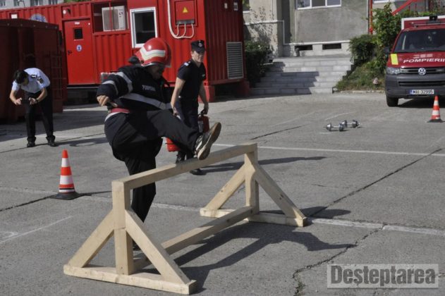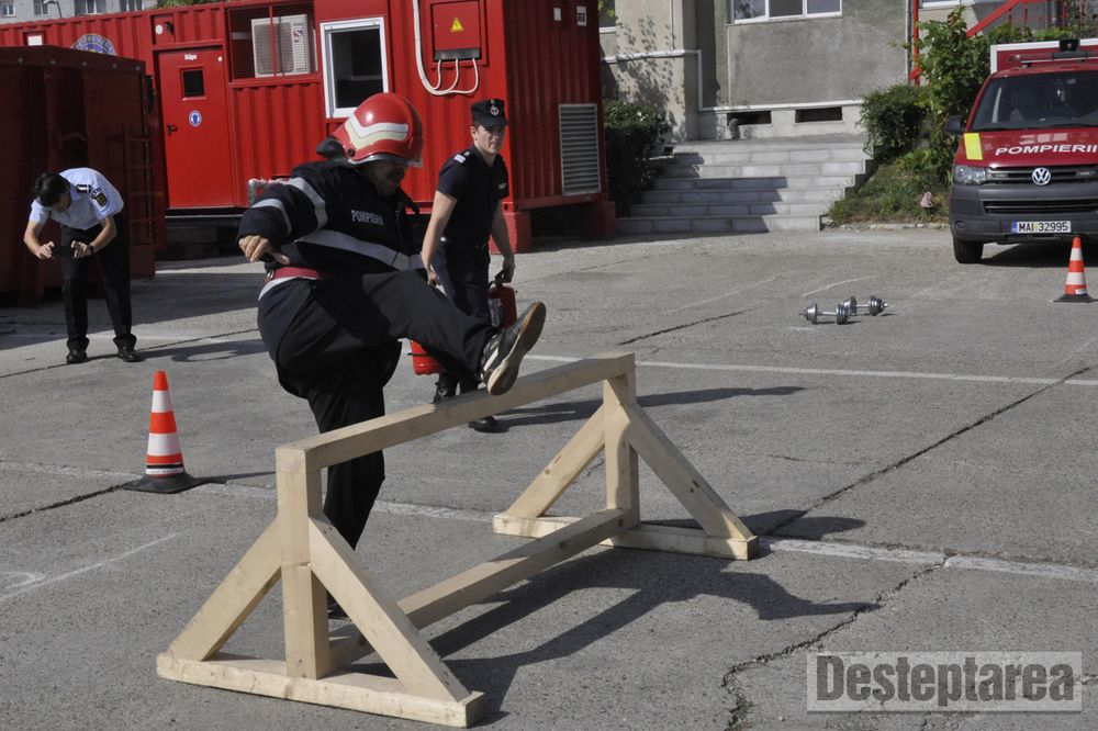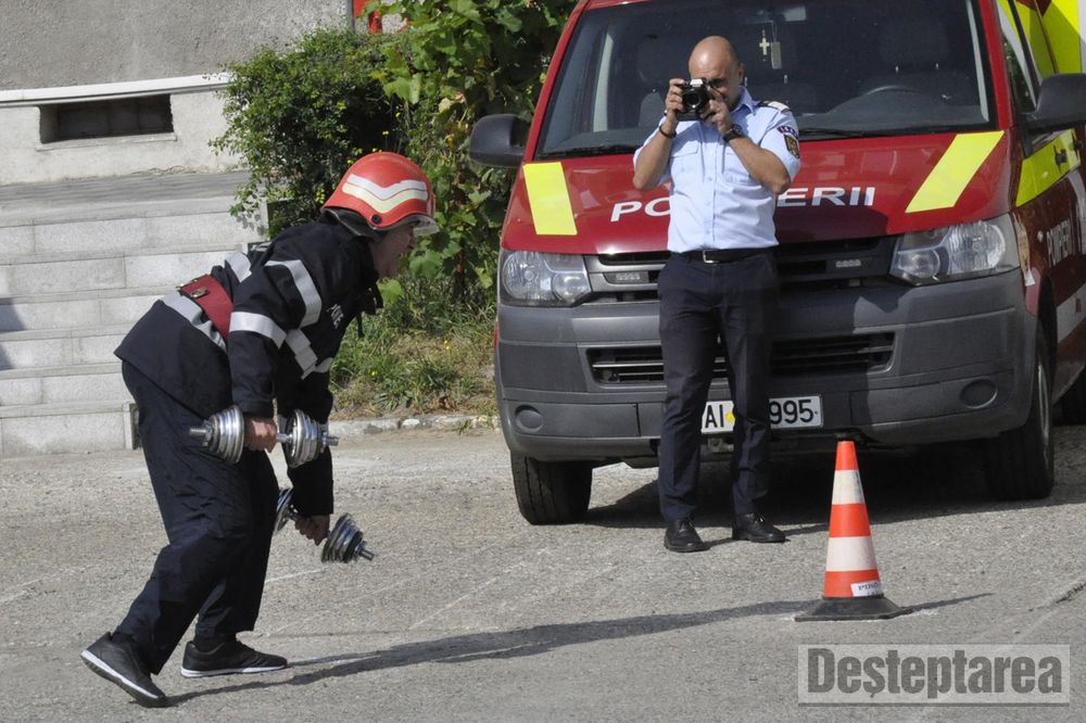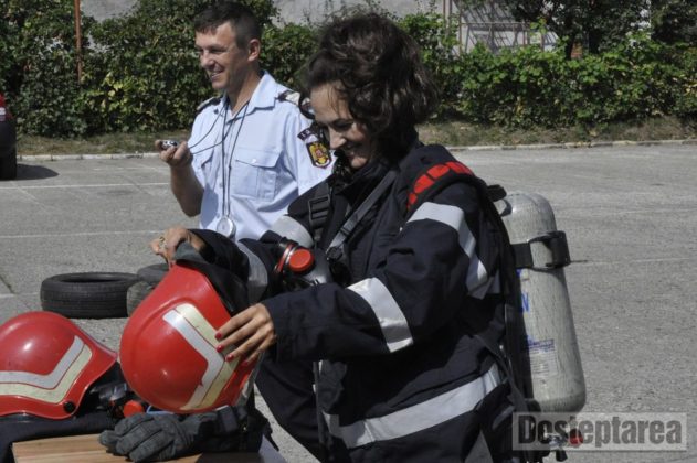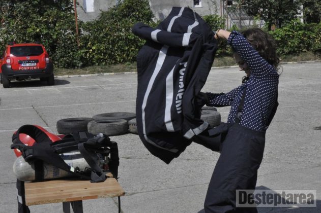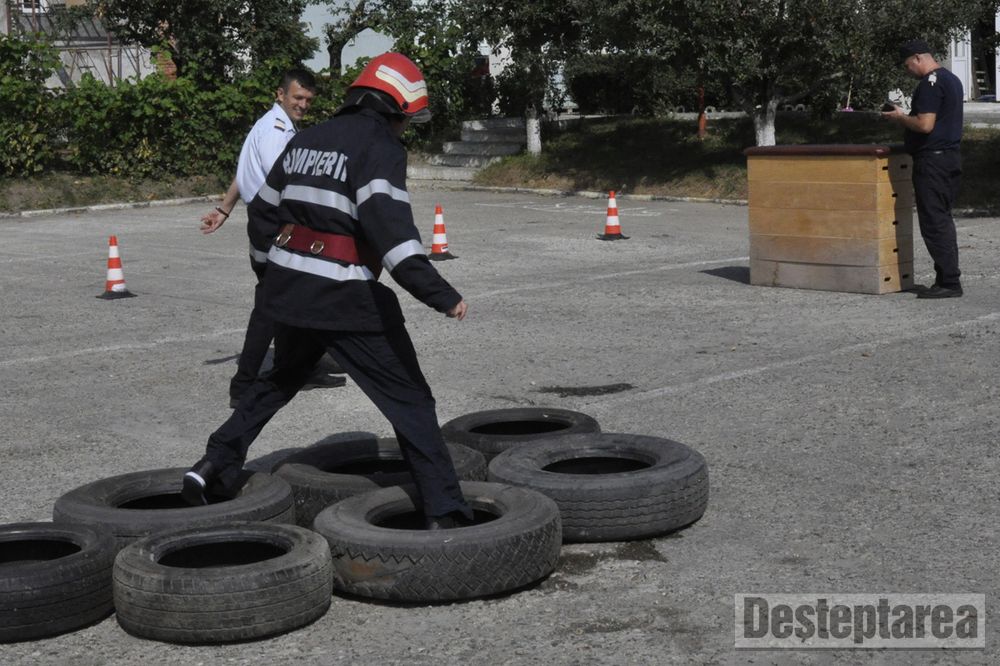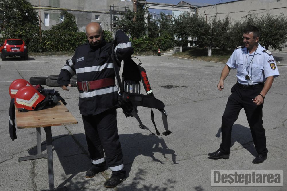 Probele au fost identice cu cele pe care le susțin, la preselecție, tinerii care doresc să urmeze această carieră frumoasă, dar care presupune și asumarea multor resposabilități. Totul contra cronometru, în locații diferite, situate în spațiul amenajat pentru instrucție, din incinta Unității de Pompieri, de pe Str. Milcov, nr 49. Prima dată a trebuit să ne familiarizăm cu echipamentul de protecție, care cântărește în modulul standard, 35 de Kg.