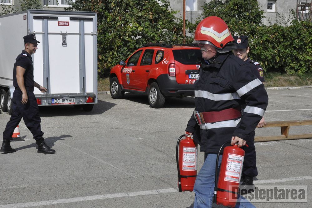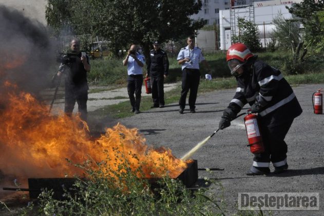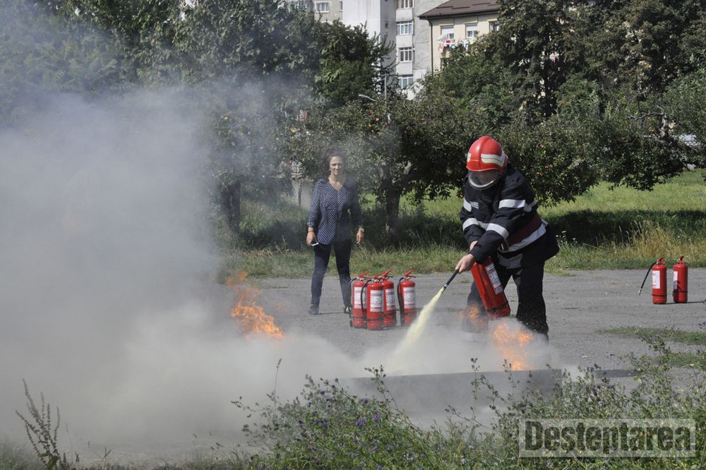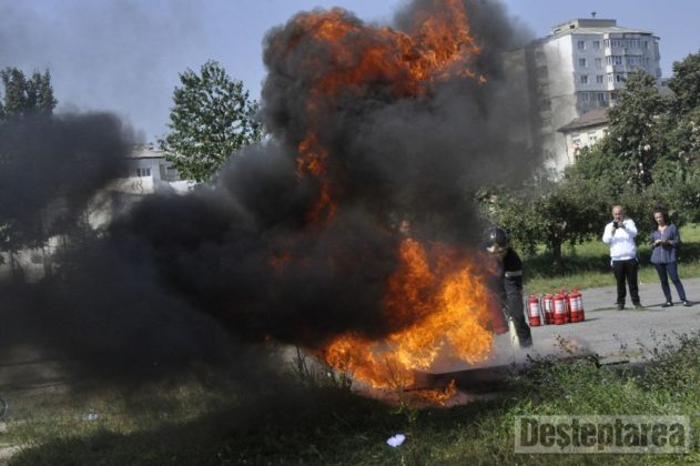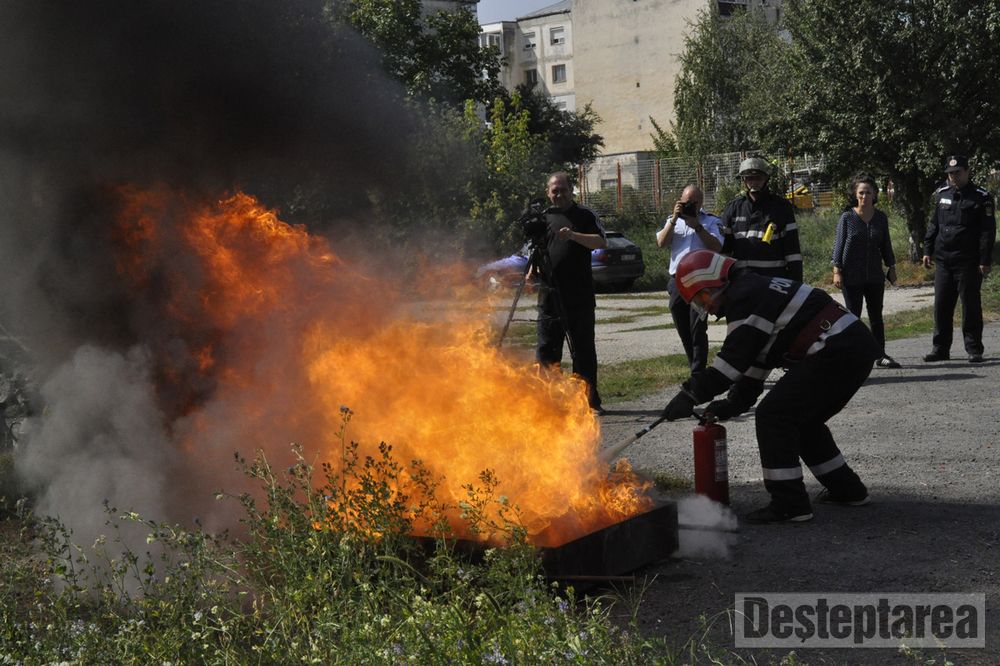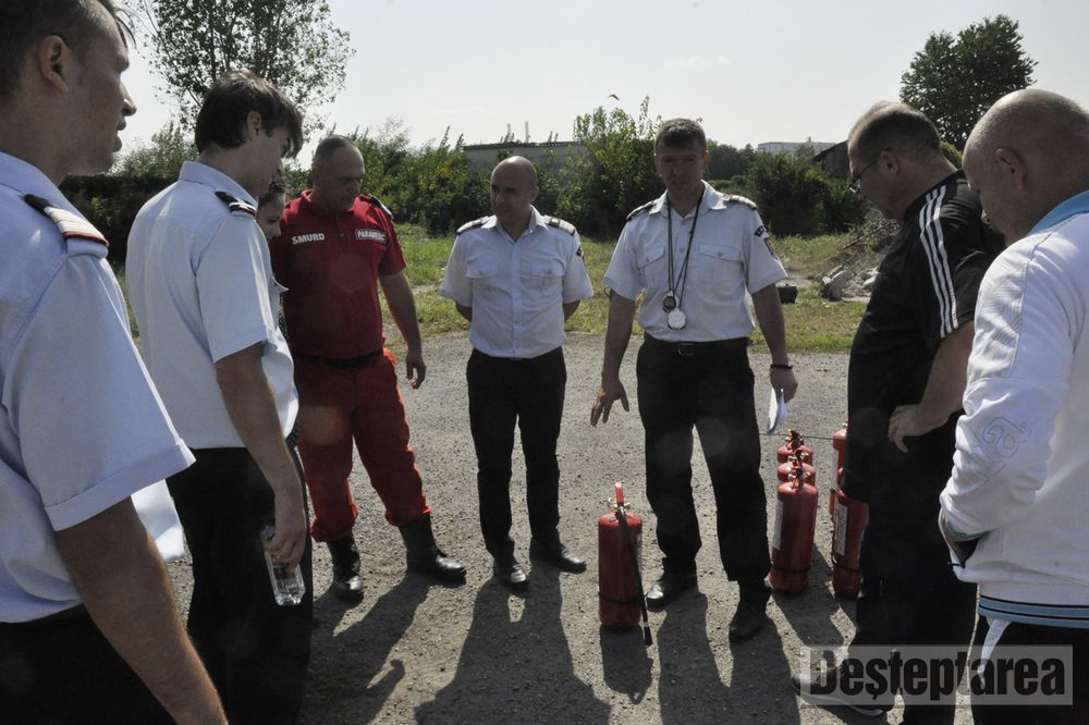 Cea mai palpitantă rămâne ultima probă, când acționezi viziera căștii de protecție și trebuie să alergi ca să stingi, folosind un extinctor încărcat cu pulbere, un foc care a izbucnit, de această dată provocat de organizatori, într-un mediu controlat și protejat. Spre onoarea noastră, a celor cu elan și ceva orgoliu masculin, am fost învinși de o reprezentantă care nu a venit îmbrăcată în fustă.