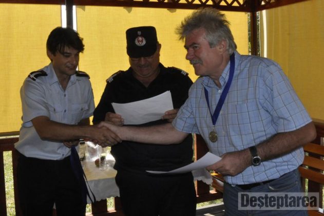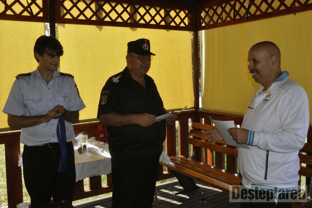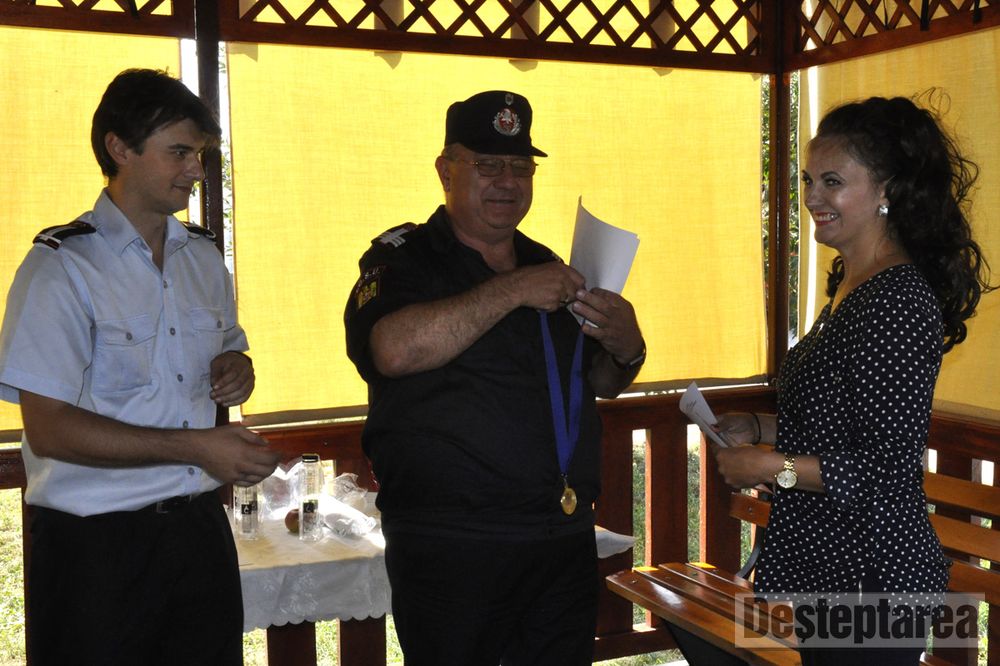 În aplauzele asistenței, campionii din acest an la competiția de profil a pompierilor, desfășurată recent la Iași, au fost nominalizați (conform timpilor descrescători), următorii: Cornel Pinter (Euro TV), mențiune. El a făcut armata acum 33 de ani la pompieri, când nu exista acest timp de echipament; Locul III, Ioan Bîșcă (Deșteptarea). Armata la Garda Națională, acum 40 de ani. Locul II, Marius Curucli (TVR 1). Mai tinerel puțin decât Cornel, parașutist profesionist, până când a intrat în televiziune. Locul I, Georgiana Macarie (Euro TV), tânără și cu energie debordantă. A câștigat două dintre probe, cu timpul cel mai scurt: la îmbrăcatul echipamentului de protecție și nimicirea focului.