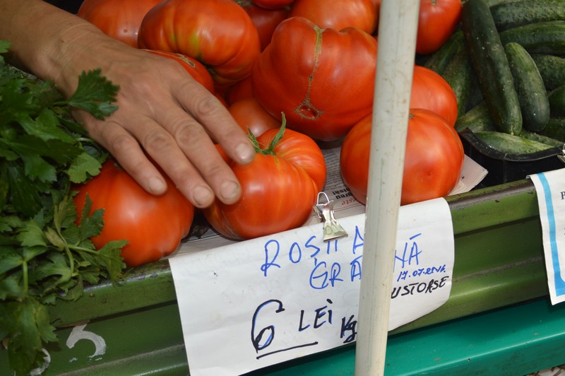Acum, insa, rosia a ajuns sa se vânda si cu 6 lei kilogramul. Culmea e ca exista clienti si la un asa de mare pret. Cu putin noroc, poti pleca acasa cu rosii in traista la 3 lei kilogramul, insa, evident, mai mici ca dimensiune si…ceva mai trecute, necoapte la interior ori atinse de mana. Lenuta Tigantis, de 38 de ani, e producator agricol din zona Parava.