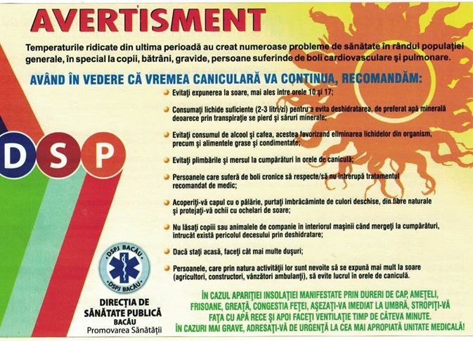 Pentru evitarea apariţiei acestor efecte negative ale temeperaturilor ridicate asupra sănătăţii oamenilor recomandăm: