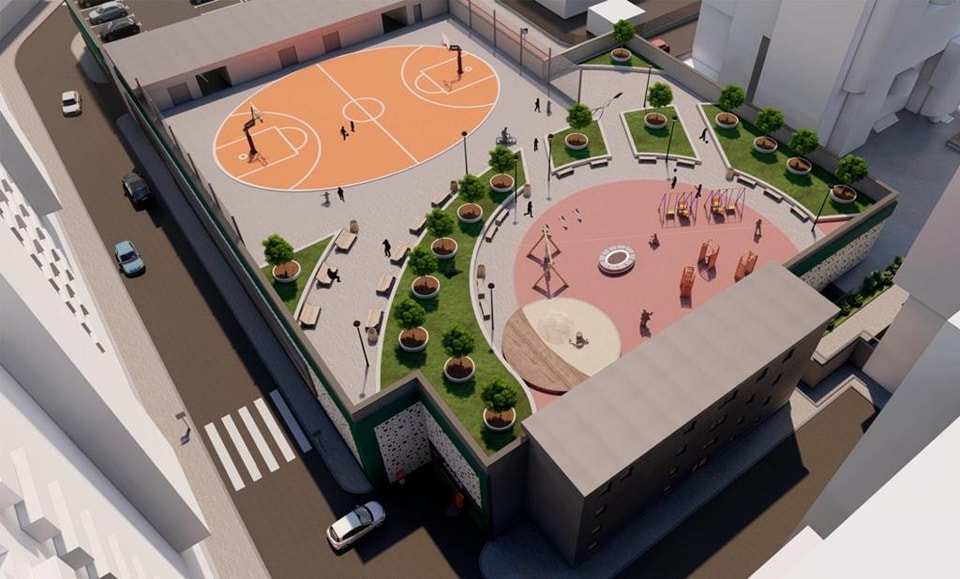 Clădirea parcării va fi proiectată cu atenție la detalii și va include 3 niveluri, dintre care un nivel subteran-demisol și două niveluri supraterane. La acestea se adaugă parțial etajul 2 și o terasă circulabilă, utilizată pe jumătate din amprenta acesteia pentru spații de parcare. În total, vor fi disponibile 363 de locuri de parcare în corpul de clădire, inclusiv 12 locuri destinate persoanelor cu dizabilități.