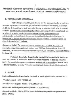 Proiectul de buget al Municipiului Bacău / click pentru documentul PDF