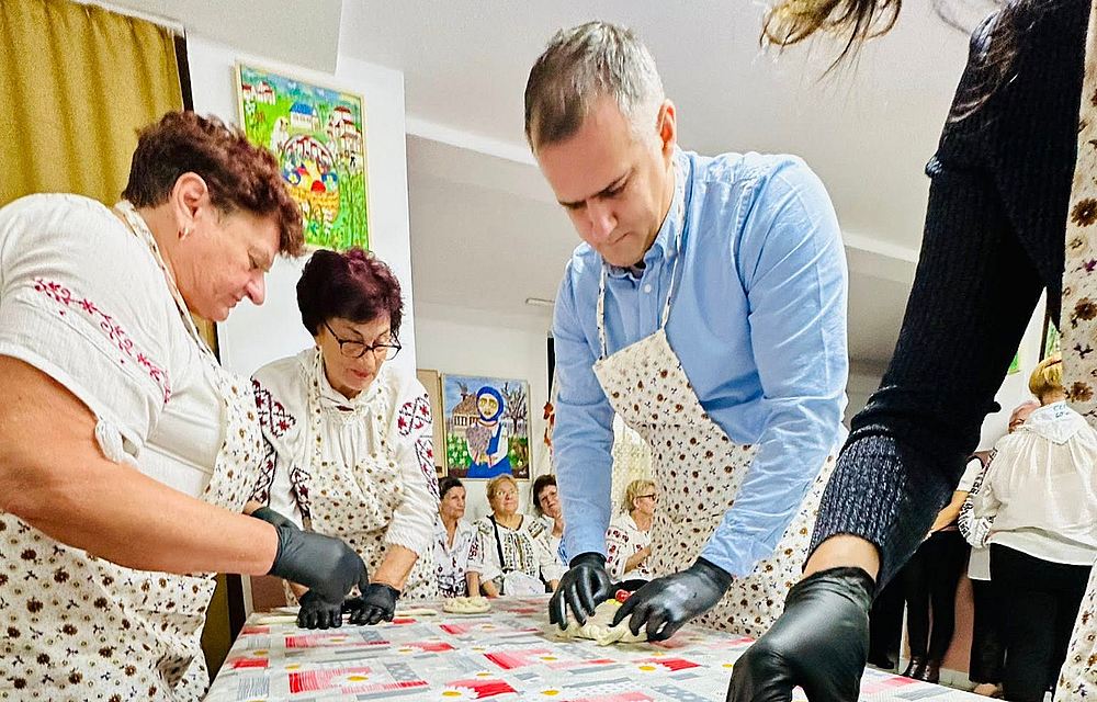 Iar cireașa de pe tort a fost „pusă” de primarul Lucian Stanciu Viziteu, care nu doar că a venit la întâlnirea cu seniorii, ci și-a suflecat mânicile și a frământat cot la cot cu membri grupului de gastronomie, iar roadele toamnei au fost împărțite și cu o familie defavorizată, ca gest de solidaritate.