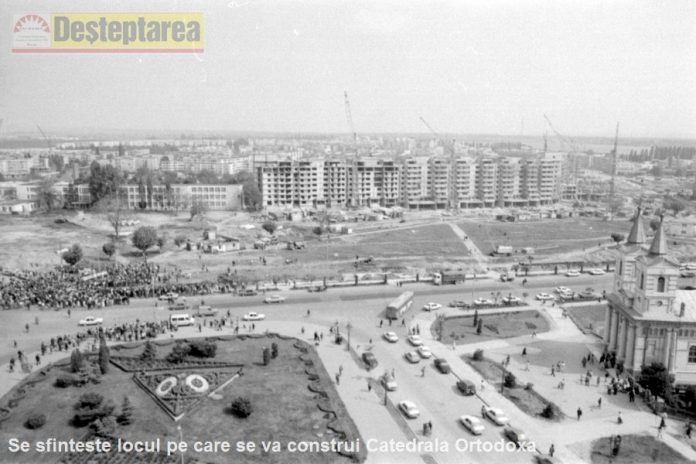 In 1991 se pune temelia Catedralei Ortodoxe. Dupa cum veti vedea in imagini, in fata Hotelului Moldova era spatiu verde si vestitul ceas floral, iar blocurile de langa Colegiul Vranceanu erau abia in constructie.