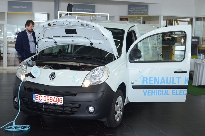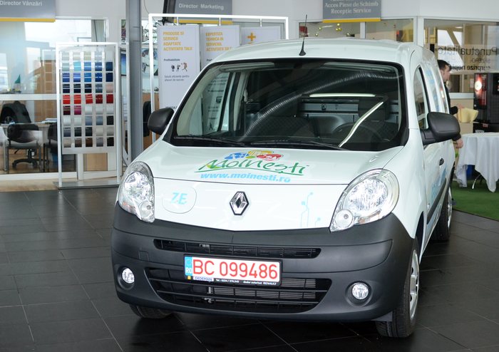 Primul autovehicul 100 la suta electric vândut in România a ajuns, la sfârsitul saptamânii, in garajul primariei din Moinesti. Autoutilitarea Renault Kangoo Z.E, achizitionata prin Programul de promovare a vehiculelor de transport nepoluante si eficiente din punct de vedere energetic, a fost livrat de compania Dedeman Automobile Bacau, dealerul local al marcii Renault.