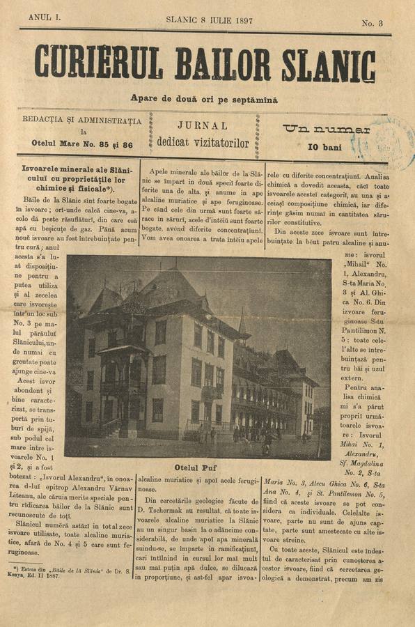 În primele numere apărute în 1897, ziarul ,,Curierul Băilor Slănic” prezintă un istoric al dezvoltării stațiunii și descrie izvoarele minerale de aici, cu proprietățile lor chimice și fizice.