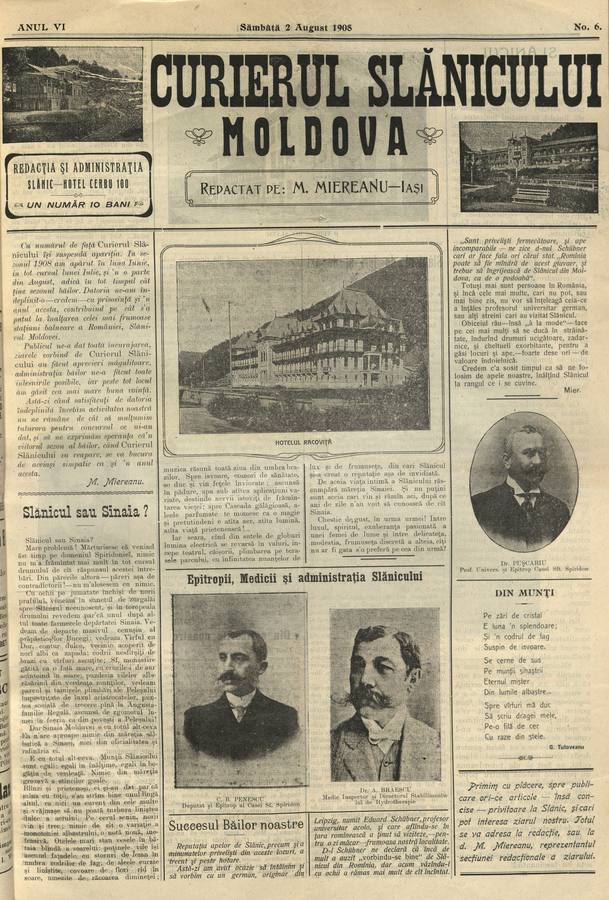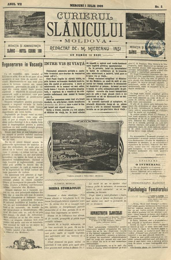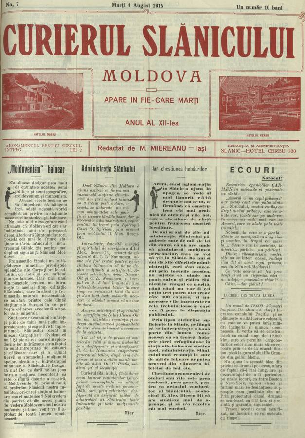 În primul număr din 1932, ,,Curierul Slănicului Moldova” relatează o convorbire avută la Berlin de prof. dr. Demetriade cu medicul-șef al al fostei Armate a IX-a germane, care a stat mai mult timp la Slănic și care a declarat că românii nici nu-și dau seama de marea valoare pe care o reprezintă apele minerale din această stațiune, în terapia balneară.