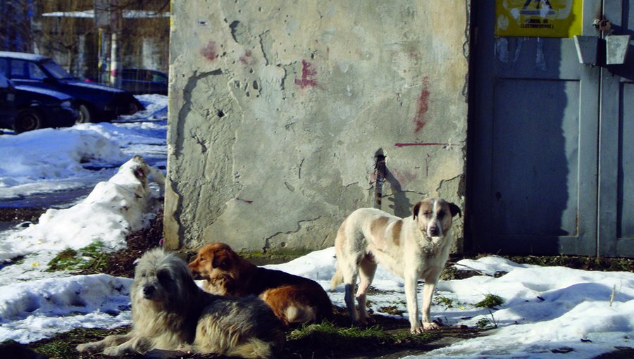 Aici am intâlnit o imagine devenita clasica. Câini in strada. Numai ca, de aceasta data erau foarte calmi. Stateau tolaniti la soare, pe un petec de iarba iesit de sub zapada…