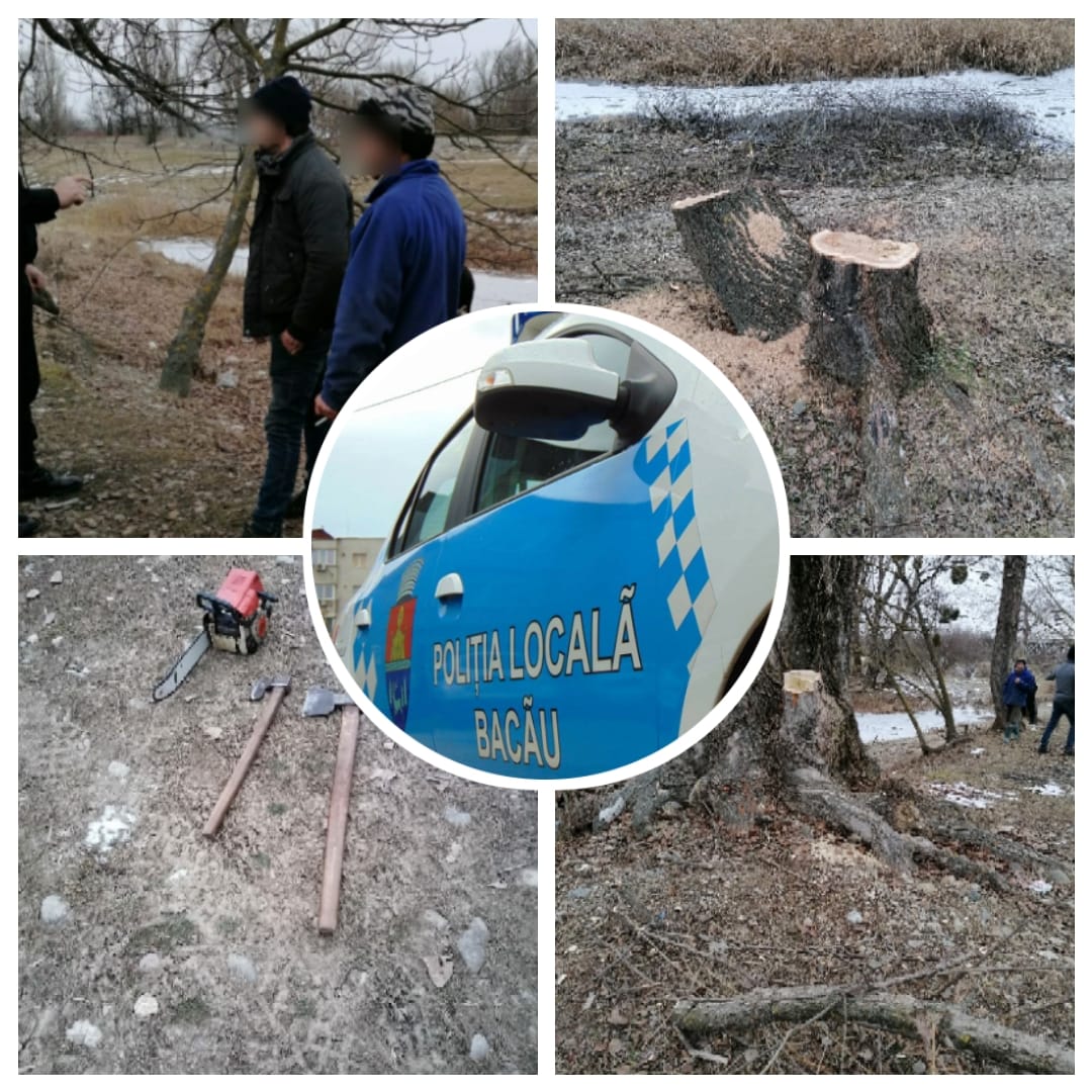 Duminică, 14 februarie a.c., în jurul orelor 17.00, lucrători din cadrul Compartimentului Intervenții al Poliției locale Bacău, au surprins în zona Parcului Gherăiești, două persoane de sex masculin care sustrăgeau material lemnos.