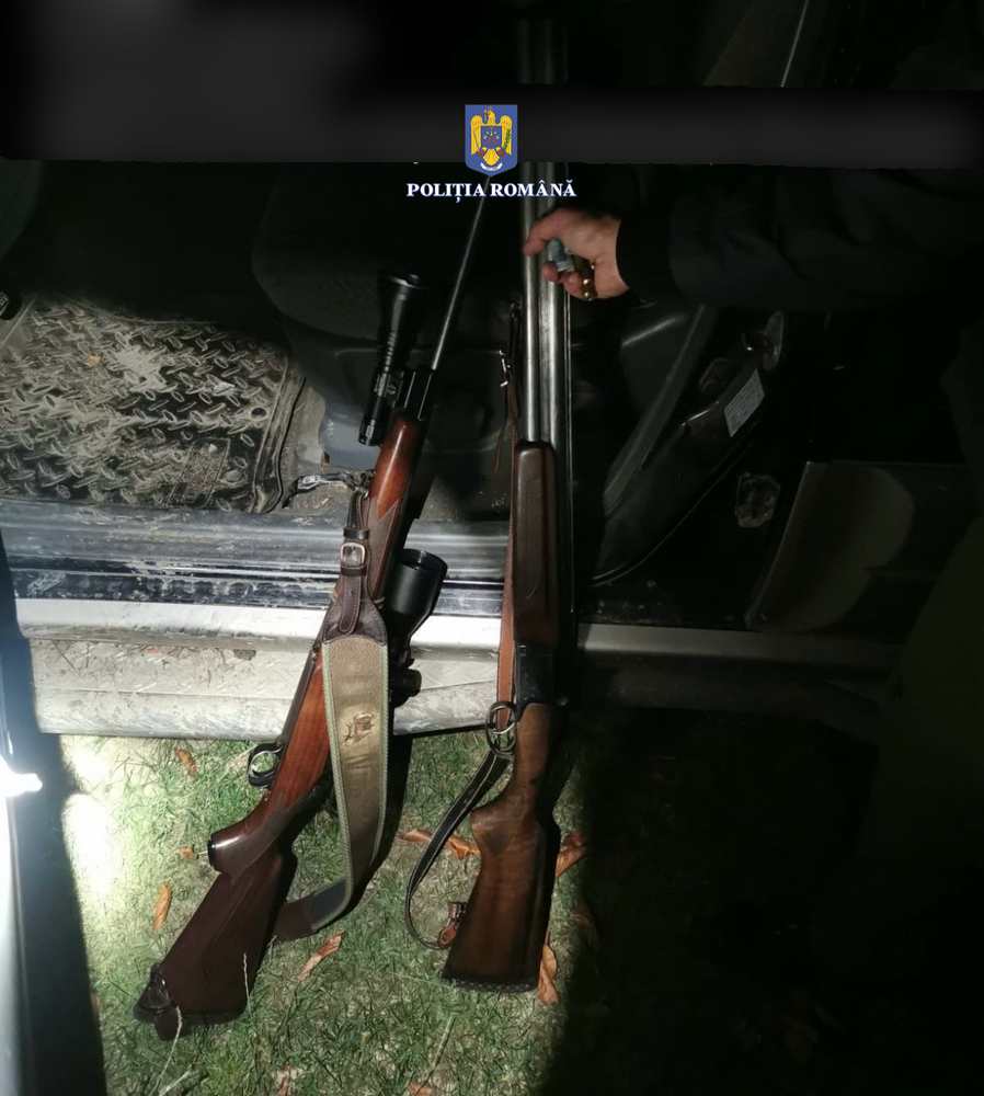 Polițiștii au ridicat armele și muniția în vederea continuării cercetărilor sub aspectul săvârşirii infracţiunilor de braconaj cinegetic şi uz de armă letală, fără drept.