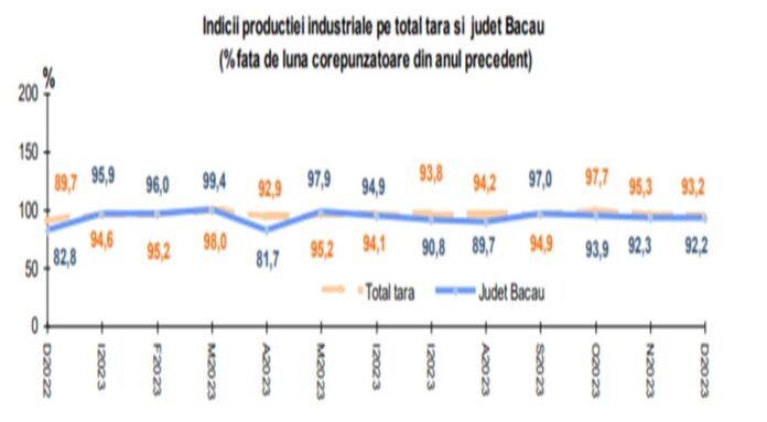 Datele statistice recente indică o scădere semnificativă în producția industrială a județului Bacău în luna decembrie 2023, conform Institutului Național de Statistică. Producția totală a înregistrat o reducere cu 21,1% în serie brută față de media anului 2022.