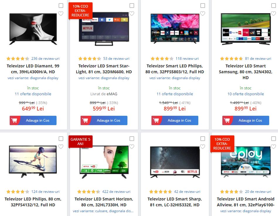 Dacă ai făcut o căutare în rândul categoriei de televizoare ieftine și nu ai fost mulțumit de ce ai găsit, sper ca exemplele de mai sus să îți arate că Resigilatele pot fi o opțiune.