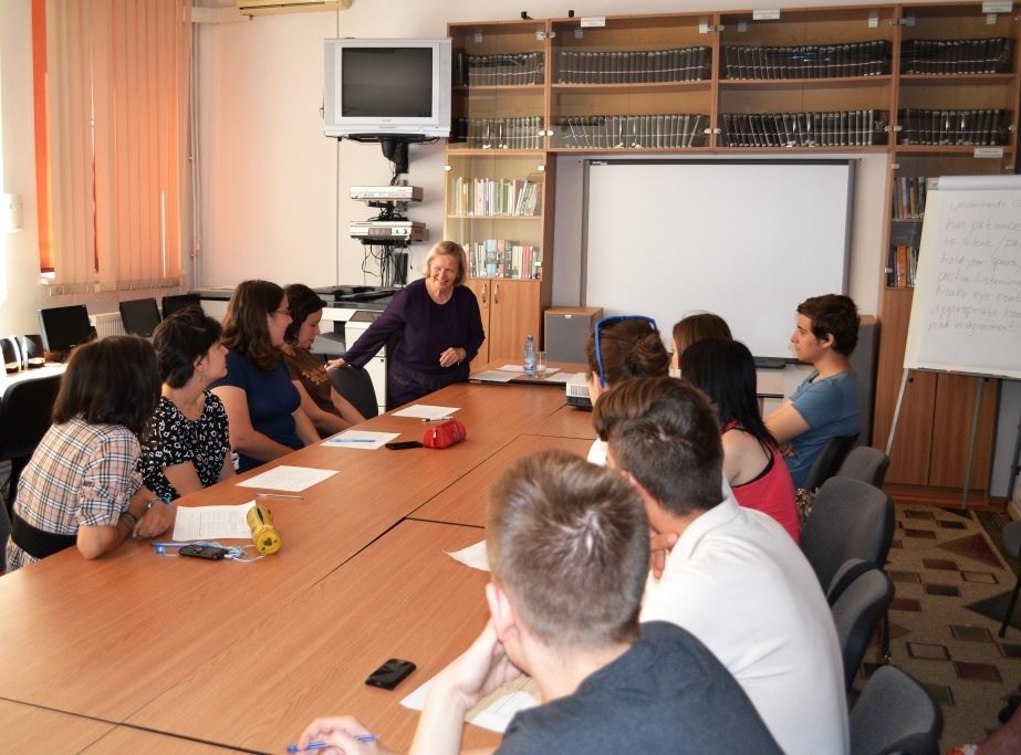 Prin proiectului English Access Microscholarship Program, profesorul Ilse Agnes Houle, Senior English Language Fellow al Ambasadei S.U.A. la Bucuresti, se afla zilele acestea in Bacau, unde sustine o serie de conferinte pentru elevii bacauani in Centrul American Corner Bacau.