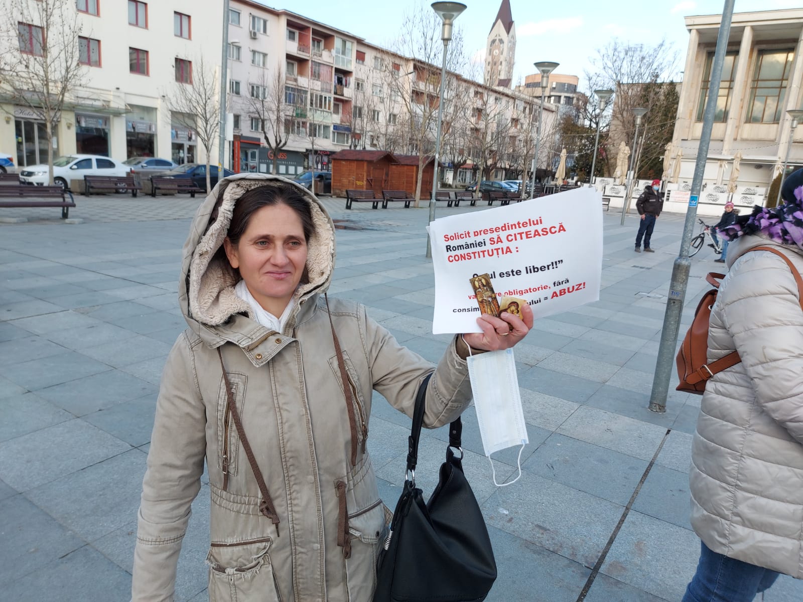 Mai mulți băcăuani protestează în Piața Tricolorului față de vaccinarea obligatorie și față de restricțiile impuse in contextul epidemic.